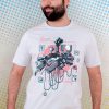 Malha em 100% algodão cinza prata. Estampa em silk de alta qualidade.